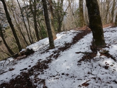山道は、悪くないものの倒木は放置されたまま。途中で一度尾根筋を間違えそうになったので、尾根の位置を確認しながら、アップダウンを繰り返し、一ノ沢峠に到着。ここまでくれば、後は整備された登山道なので迷うことなく山頂に。この極めてマイナーなルートは、眺望があまりないだけに人に会うこともなかった。雪も多少残っていたもののアイゼンはお守りのままで、花のない北尾根では雪がある変化が楽しかった。 大山山頂までの片道で11㎞も歩くようなことは、このコースしかないだろう。下山は、最もメジャーなコースを選択し、多くの花を楽しめた。