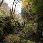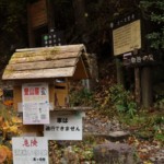 白谷沢登山口は、晩秋の紅葉に染まった名栗湖のほとりにあり、この景観をしばし眺め、野鳥のさえずりを聞きながら気持ちよく登り始めることができた(登山口には何故か「車は通行できません」の注意書きがありました)。