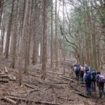 道路凍結のためマイクロバスでは登り切れず、結婚の森登山口手前の通称「採石場」から歩き始めた。