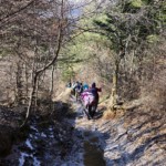 石割山からの下山は一部急坂であったがロープがはってあり、安全に降りることができた。計画での昼食場所は平尾山を指定していたが、10時台で到着してしまったため、急遽昼食場所を太平山とし、富士山を眼前に、ぽかぽかした陽気の元昼食を楽しんだ。