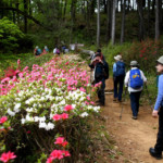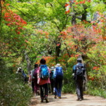 天覧山・多峯主山はTTCでは初めての山で、コースは丘陵のような低山に河原歩きとコンパクトな工程で人気なコースでした。お試し参加のYさんと参加者で自己紹介をしてから東飯能駅から登山口がある能仁寺に向かい、飯能市の公共施設が集まっている場所の駐車場を過ぎた広場で準備体操を済ませ、能仁寺の門をくぐり抜けツツジの花が見頃の山道をゆっくり歩きました。