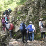 少し下ったところに枯れることがないと云われる雨乞い池を右手に見て吾妻峡へ下山しました。一旦公道を歩き円柱の飛び石のようなのドレミファ橋を渡り、しばらく入間川の河原を歩きました。当日は4月にしては気温も高かったのですが川からの涼しい風を感じました。その先は、公道を速足で飯能駅に向かい、すでに予定時間を大幅に過ぎていましたが、次発の電車にギリギリで何とか乗車し帰着しました。
