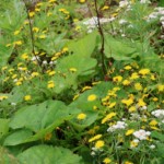 ・8/2夜、新宿から夜行バスに乗り, 早朝 金沢に到着、コインロッカーに温泉セットを預け、コンビニで昼飯を買い金沢駅から白山登山バスに乗りこんだ。市ノ瀬からはシャトルバスに乗り換え別当出合に到着し登山開始。甚之助避難小屋の所で昼食。花を見ながら黒ボコ岩を通り山小屋の白山室堂に到着。白山自然保護センターのボランティアの人たちが室堂平の花の説明をしてくれました。一周40分間、クロユリの花も含め、沢山の花が咲いていました。
