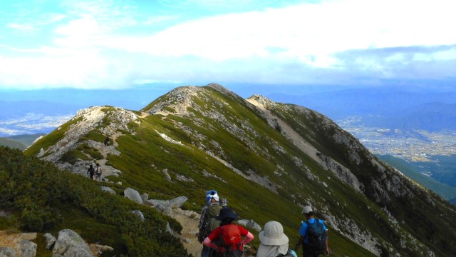 4. 続いて、好天のなか伊那前岳へ出発したが、帰る頃には霧が立ちこめてきた。