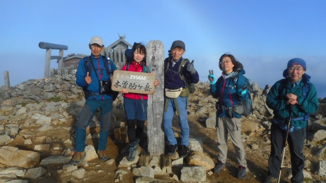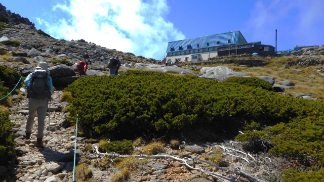 7. 朝食時間が5時だったため、2日目の出発を1時間早めて6時とした。小屋に荷物を預けることができたので、昨日と同様軽装での山行となった。多少霧の中の出発であったが途中から晴れて、気持ちの良い登山を楽しむことができた。