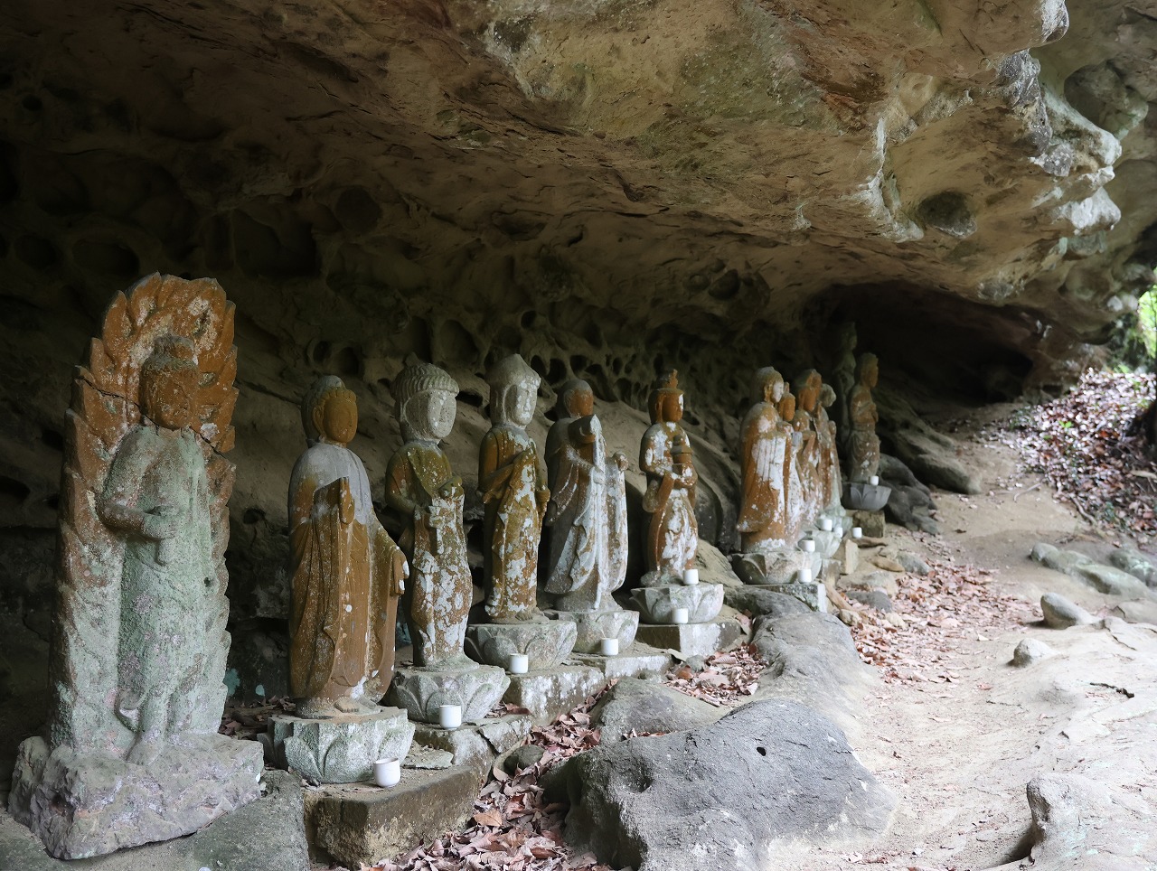 登山道に入ったところで、メンバーの1人が足に多少の違和感を感じ、下山を希望した。登山を開始してから1時間ぐらいだったのと、引き返してもほとんどが寺の散策コースであったことからSLと一緒に散策コースまで下山してもらいSLが戻るのを待って山行を続けた。出発時間が大分遅れたことで般若山の手前で近道をすることにしたが、前日の雨で道が多少泥濘んでいて滑りやすくなっていたことと、倒れた木が道を塞いでいたため途中で引き返し、計画ルートを大幅に変更することにした。