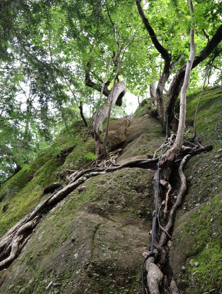 登山道へは法性寺の境内を通るが、庭の整備代として¥300/人、要求され支払った。我々は利用しなかったが、ネットで法性寺の無料駐車場が紹介され、登山客が寺の駐車場に止めるので寺としては迷惑しているとのこと。後日 webで確認したところ、「法性寺の駐車場での登山客による長時間駐車に、大変困っている。法性寺山門前の駐車場は参拝客用なので、登山客は50mほど手前にある駐車場に止めてください」 と住職のコメントがあった。