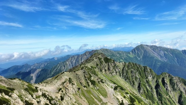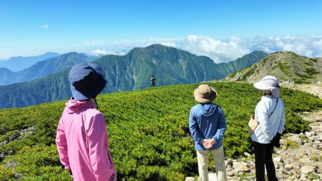 3泊4日の縦走は大変な道のりではありましたが、素敵な仲間と感動や苦しみを共有しながら、青空の下、これから目指す山と歩いてきた道のり、そして遠くまで続く南アルプスの山々を感慨深く眺めながら、晴々とした気持ちでずっと歩けたことはとても幸せなことでした。