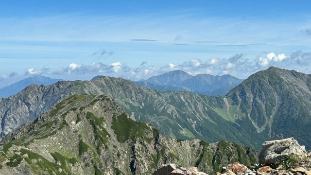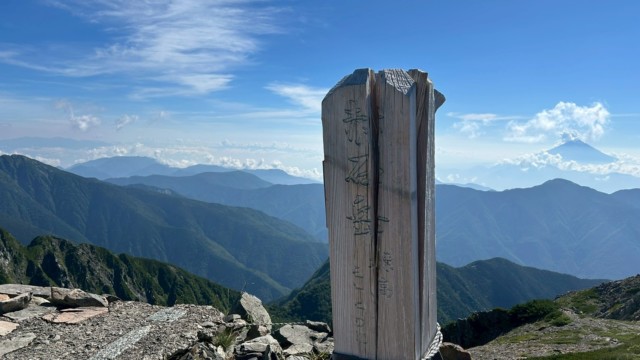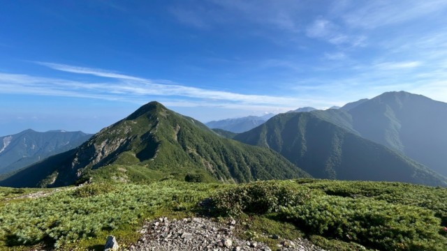 私から見た山容は「どっしりしている」の一言。周回なので聖岳と赤石岳に圧倒されっぱでした。チームの皆さんありがとうございました。