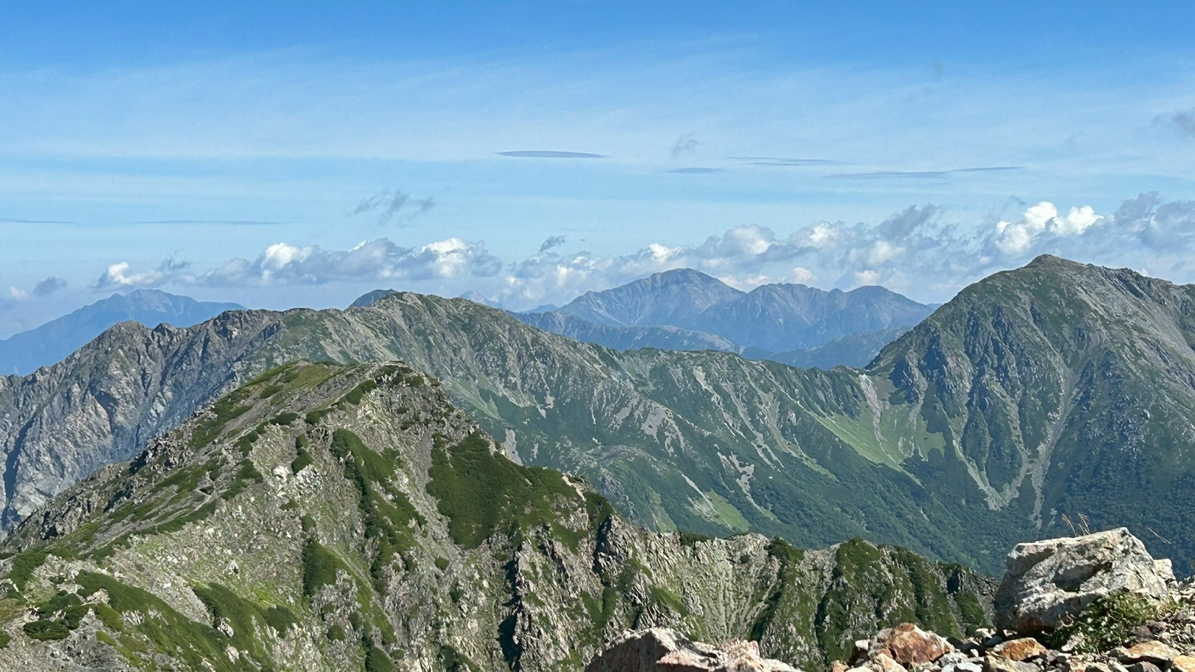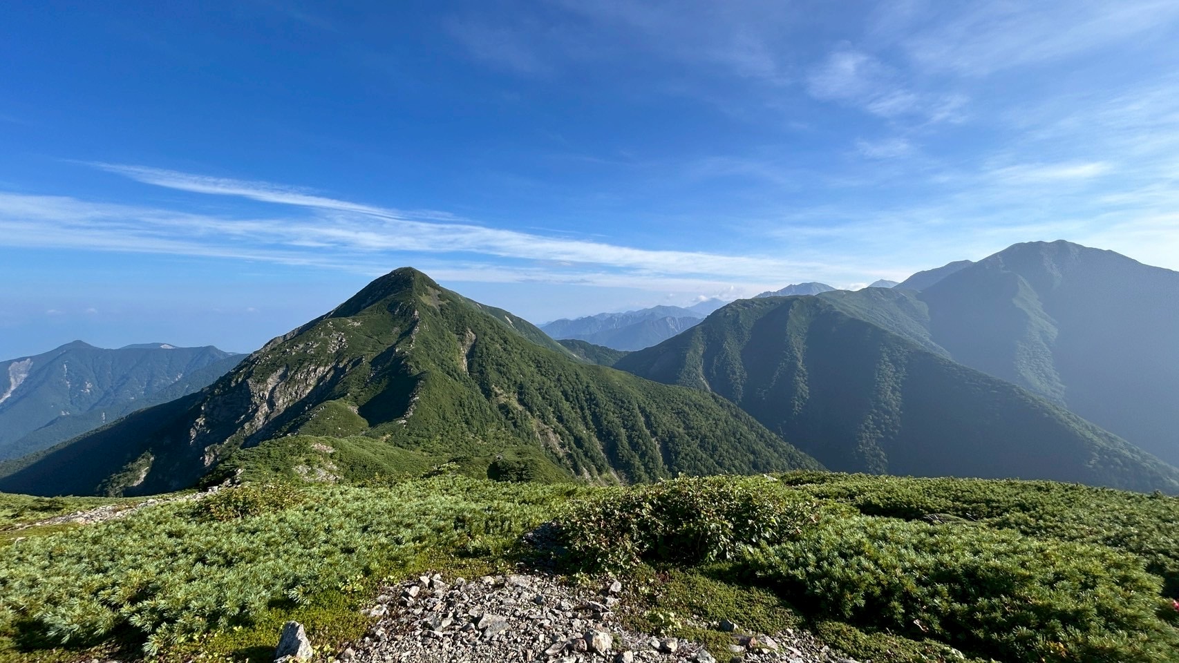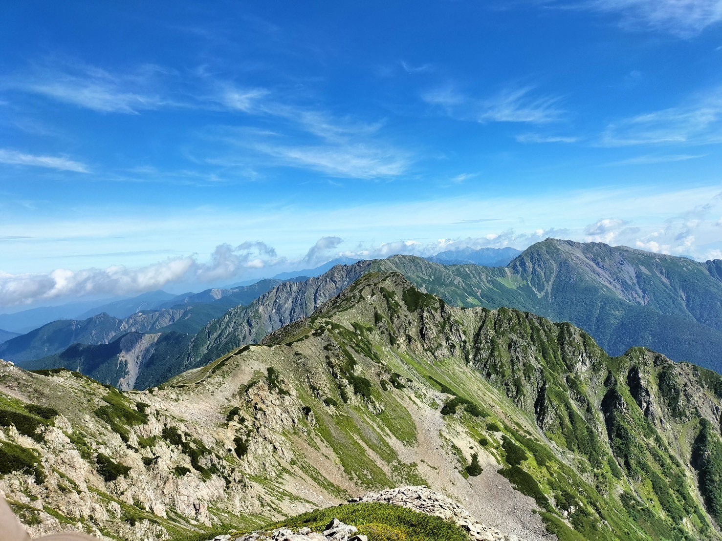 3泊4日の縦走は大変な道のりではありましたが、素敵な仲間と感動や苦しみを共有しながら、青空の下、これから目指す山と歩いてきた道のり、そして遠くまで続く南アルプスの山々を感慨深く眺めながら、晴々とした気持ちでずっと歩けたことはとても幸せなことでした。