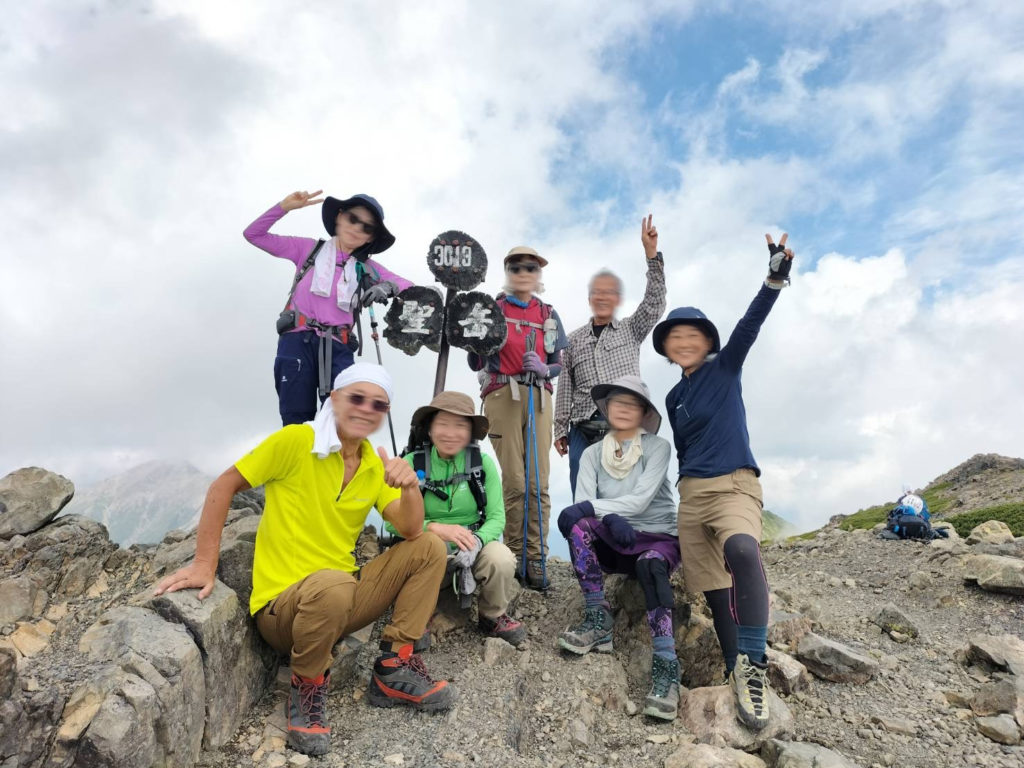 S.K: コースはアップダウンで、かなりきつかったが南アルプスのどっしりした素晴らしい山々を縦走できてリベンジできました。山小屋では連日、親睦会も開かれ色んな話を聞いたりし、私にとっては心に残るベストな5日間でした。CLを初めメンバーの皆さま、ありがとうございました。