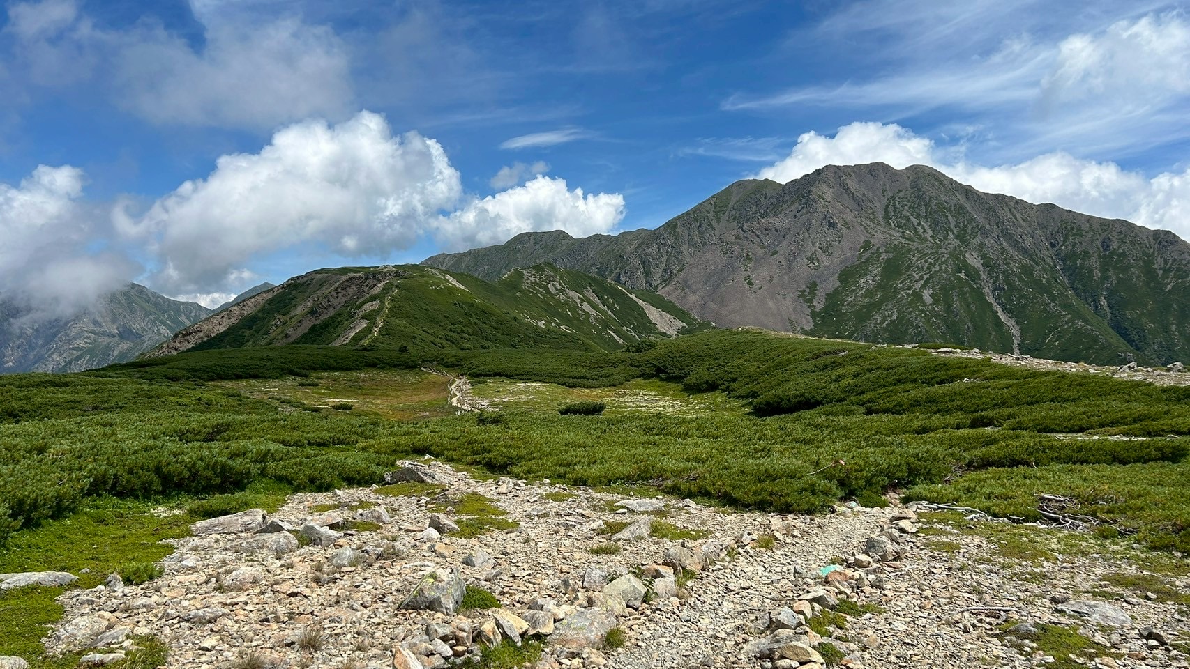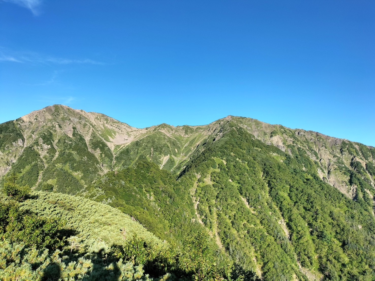 私から見た山容は「どっしりしている」の一言。周回なので聖岳と赤石岳に圧倒されっぱでした。チームの皆さんありがとうございました。