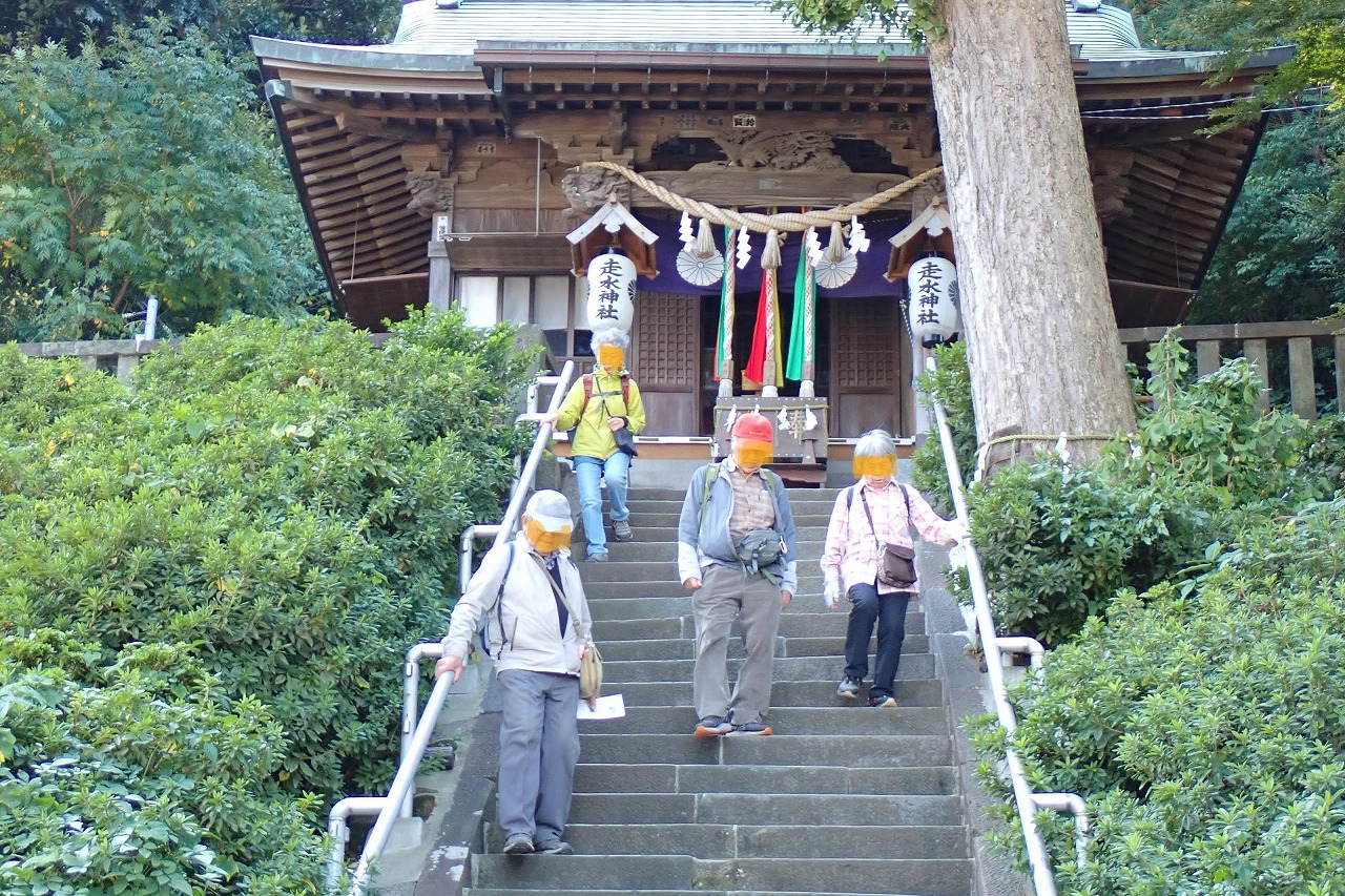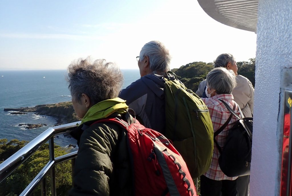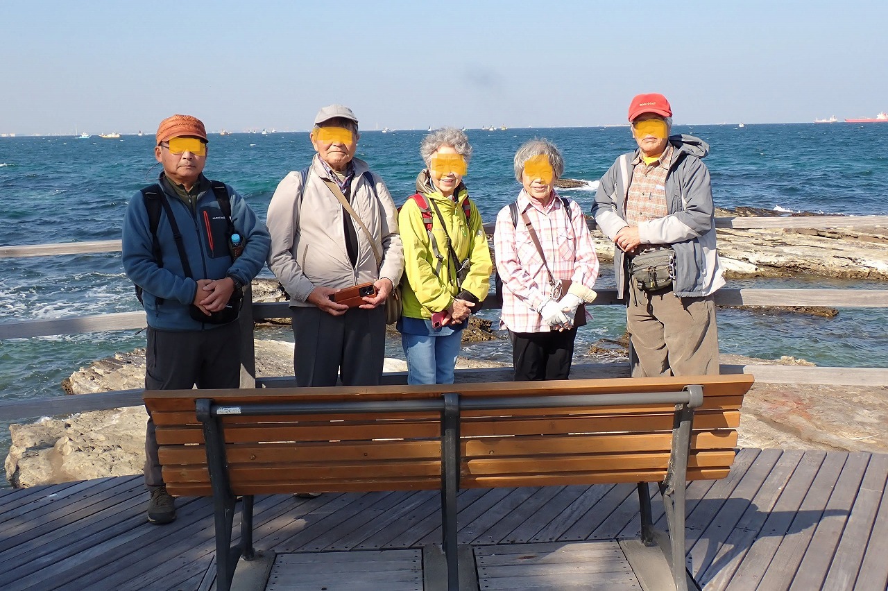 10/30(木)早朝、小田急線本厚木駅改札口に、シニアメンバ5名が集合。横浜駅で京急線に乗り換え、横須賀市馬堀海岸駅に降り立ち、走水水源地公園、走水神社、走水・観音崎ボードウォ-クを辿り、東京湾に面した海岸線を観音崎までウォ-キングを楽しんだ。終日好天に恵まれ、大小の船が行き交う東京湾の大展望と潮の香を存分に楽しみ、打ち寄せる波の飛沫を浴びながらの、5.5時間、約15,000歩のウォ-キングを楽しんだ。