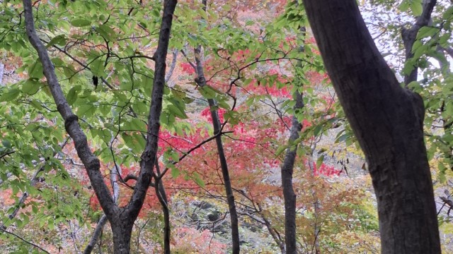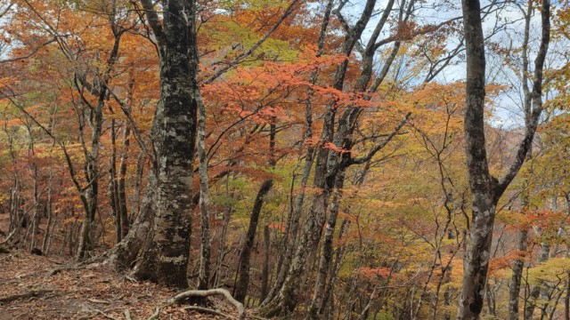 沢沿いを登って樹林の山へ。秋の紅葉を楽しむ尾根歩き