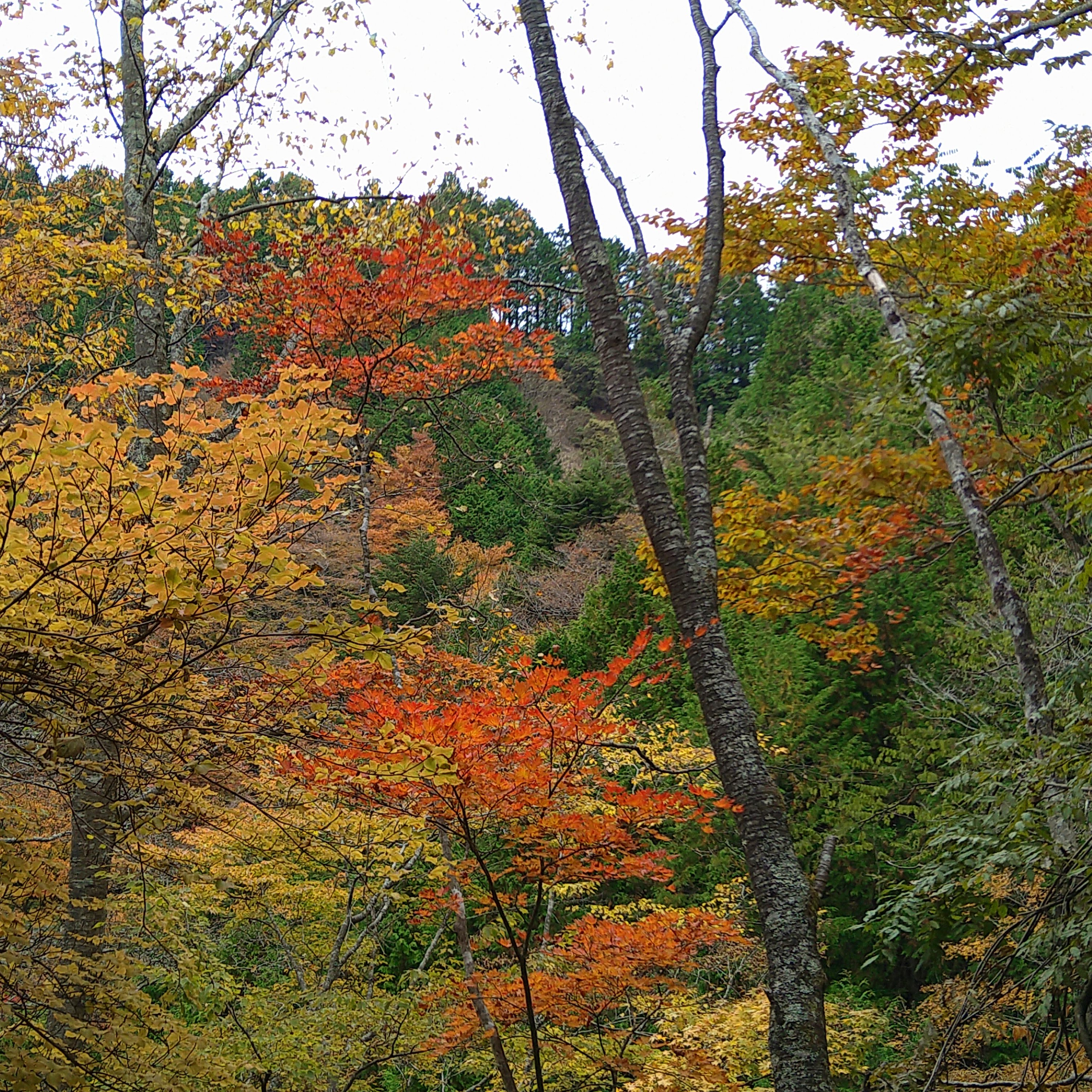 沢沿いを登って樹林の山へ。秋の紅葉を楽しむ尾根歩き