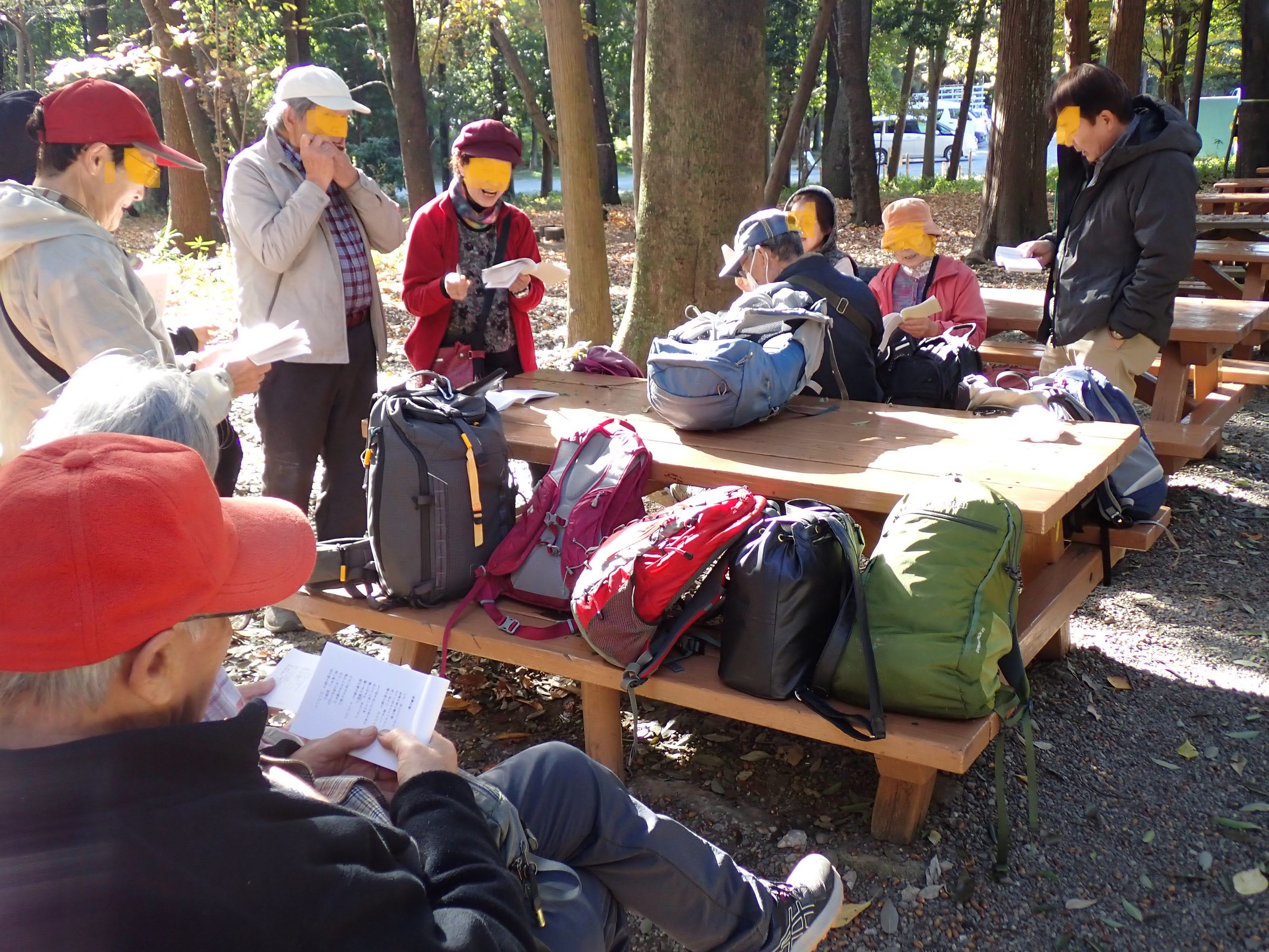 11/26(水)朝、12名のメンバが、相鉄線さがみ大塚駅に集合し、徒歩25分の大和市泉の森ふれあい公園に向かった。公園内を約1時間30分散策したのち、公園内のキャンプ場で、BBQを楽しむ忘年山行を実施した。