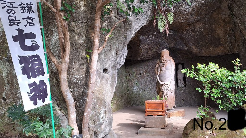 最初の目的地「浄智寺」は、北鎌倉駅から徒歩10分の距離にあり、鎌倉五山第四位の臨済宗円覚寺派の禅寺。本堂(曇華殿)に祀られている本尊「木造三世佛坐像」(過去/現世/未来の願いを叶えてくれる仏様)を参拝してから(写真1)、裏庭のヤグラ(凝灰岩の洞窟)内に祀られている福徳円満の神「布袋尊」の等身大の石像(写真2)にお参りした。