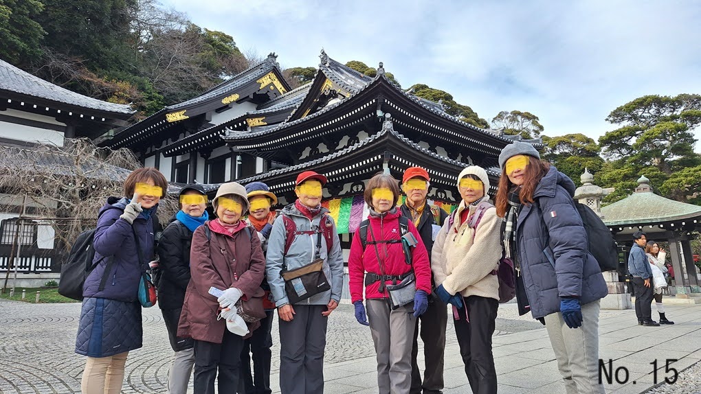 2026年1月7日(水)朝、北鎌倉駅前に10名のメンバ゙が集合。北鎌倉と鶴岡八幡宮の1寺・1社を巡ったのち、小町大路通りの3寺。続いて長谷の1寺・1社に参拝。最後に江の島に移動して、江島神社弁財天に参拝する鎌倉・江ノ島七福神巡りを敢行し、今年一年の健康と家内安全を祈願した。最高気温9℃の寒い一日であったが、行動時間6時間、歩行数21,000歩の和気藹々、ゆったり歩きの8ヶ寺社七福神巡りを完了することができた。