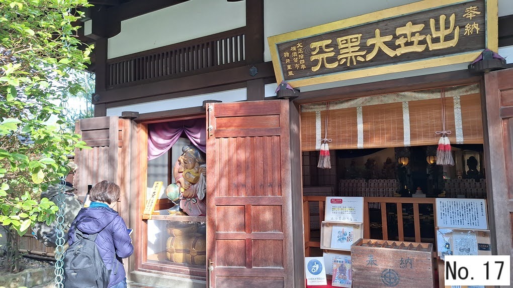 見晴らし台から、眼下に望む鎌倉市街と由比ガ浜海岸の景観(写真16)を楽しみながら一休みしたのち、境内の阿弥陀如来堂や千躰地蔵石像群等の名所を訪ね歩き、最後に七福神「大黒天」を祀る大黒堂をお参りした。かつてこの堂内には鎌倉最古(1412年作の銘)の大黒天像が納められていたそうだが、現在この像は、長谷寺ミュ-ジアム内に保管され、通常非公開となっているそうだ。その代わり堂内には、新たに「出世開運授け大黒天」と参拝者が自由に撫でることができる「さわり大黒天」(表紙写真)が祀られている。