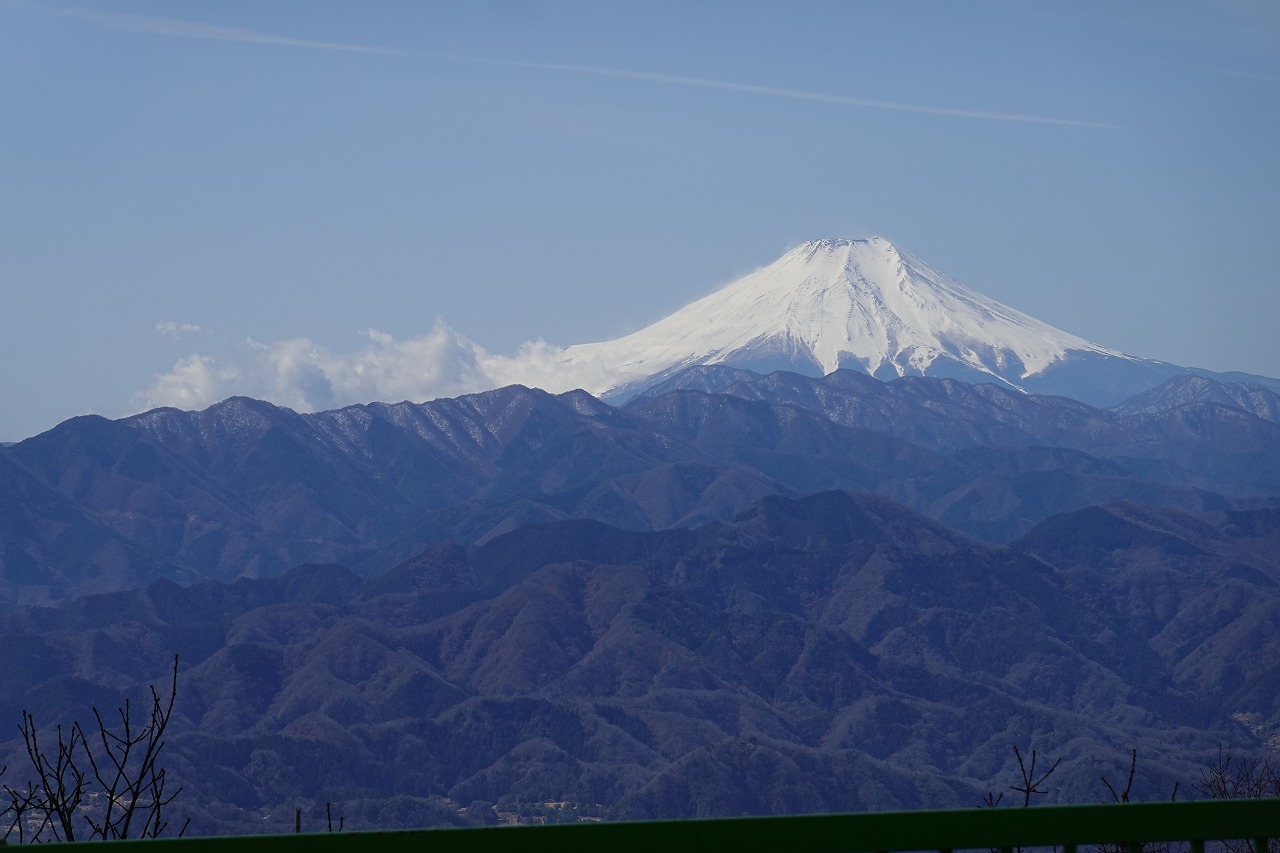 雄大な富士を見て早春の山を楽しむ
