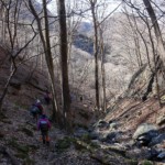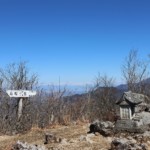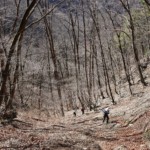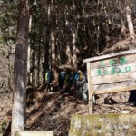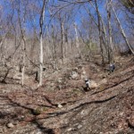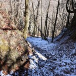 天狗岩登頂後の下り痩せ尾根で、大人数のため想定以上に時間が掛かったことと昨日の降雪が日陰部分で確実に凍結していることを踏まえ、シラケ山からの痩せ尾根岩稜コースを断念し、巻道(現地道標は横道)に変更。 時間的に少し余裕ができたので、烏帽子岳手前の「マル(1220m)」を経由して烏帽子岳へ。マルの周辺はツツジの群生地で5月ごろの開花時期がとても期待できるところ。