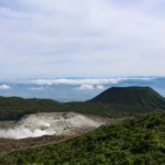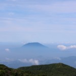 2日目: 霧島連峰の最高峰の韓国(からくに)岳は、直径900mもある火口周辺のミヤマキリシマが特に奇麗だった。ここからだと新燃岳の火口および噴煙が直接見えて、高千穂岳のシルエットが一際素晴らしかった。霧島の峰々、大浪池、桜島や開聞岳が一望でき、果ては韓国(かんこく)まで見渡せそうなほど(実際には見えない)眺望が良いことからこの名がついたといわれている。この景色を見渡すことができただけでも、今回の山旅の元を取った気がした。